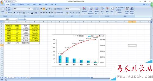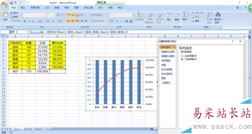 6、將主坐標軸最大值調整為自動,再按照喜好調整和美化一下圖表格式。完美的柏拉圖就完成了。可以放到報告里面了。