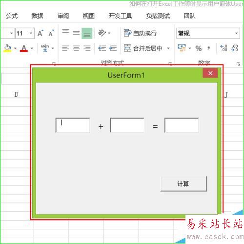 7、測試效果。將所有文件關閉后,重新打開保存好的.xlsm文件,會發現添加的用戶窗體會自動顯示出來,如圖所示。