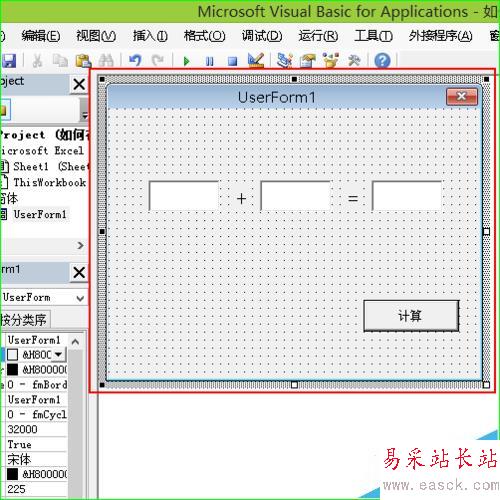 3、設計用戶窗體。如圖所示,設計用戶窗體,添加3個文本框,2個Label控件和1個按鈕控件。