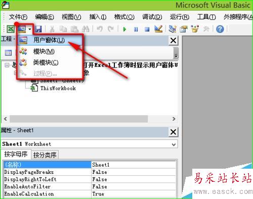 2、添加用戶窗體。打開VBE環境后,通過點擊如圖所示的工具按鈕添加用戶窗體。