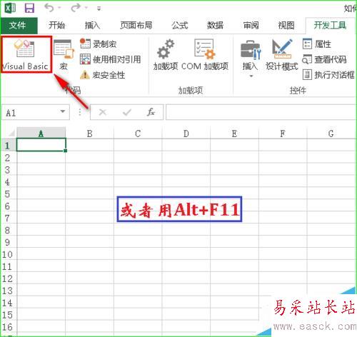 1、打開VBE環境。打開Excel工作簿后,通過點擊“開發工具”選項卡的“Visual Basic”按鈕或用快捷鍵“Alt + F11”打開VBE環境,如圖所示。
