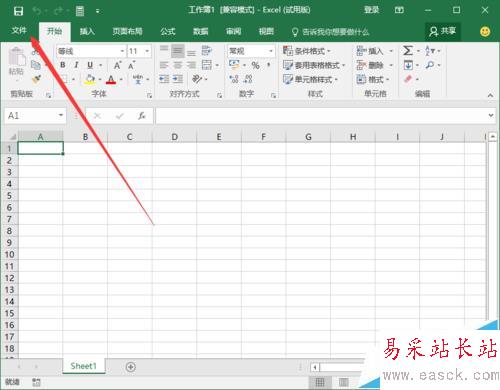 2、在打開的Excel工作表中,鼠標左鍵點擊窗口左上角的“文件”命令選項按鈕。如圖所示;