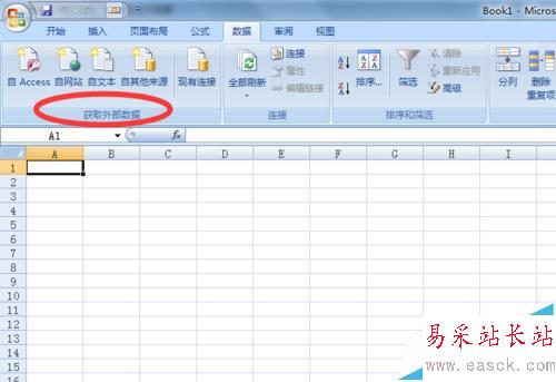 2、數(shù)據(jù)菜單欄下,最左側(cè)就是獲取外部數(shù)據(jù)選項(xiàng)卡。