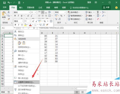 3、接下來我們需要做的就是將其隱藏起來。在此單元格是點擊鼠標右鍵,在彈出的菜單選項列表中點擊“設置單元格格式(F)”選項。如圖所示;