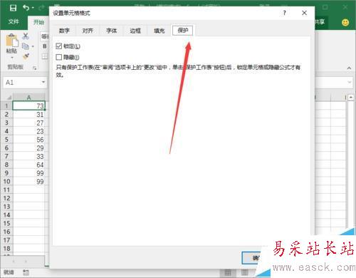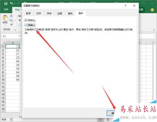 6、在保護選項卡欄中,勾選“隱藏”選項。然后再點擊“確定”按鈕。如圖所示;