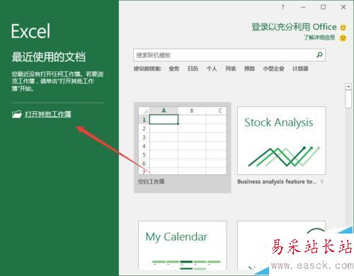 1、鼠標左鍵雙擊計算機桌面Excel2016程序圖標,將其打開運行。在打開的Excel2016程序窗口,點擊“打開其他工作薄”選項,然后選擇Excel工作簿所在的位置將其打開。如圖所示;