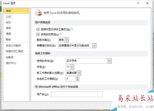 4、點擊“選項”命令選項后,這個時候會彈出工作簿的“Excel選項”對話框。如圖所示;