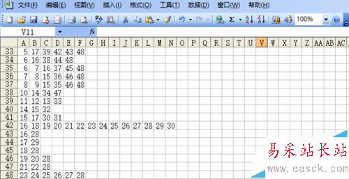 2、在“數據”表格里存放數據,共48行,這是1-16行。