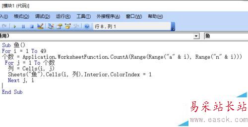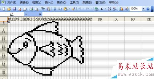 本節目的:用excel vba編程操作,通過給單元格涂色,畫一副簡筆畫——一條魚。