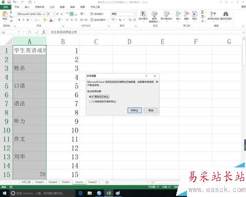 5、如圖所示,雖然排序成功,但是沒有擴展到其他區域,造成輔助列的失效,且無法還原源序列。我們重新再試一次,這次將B列先刪除掉。