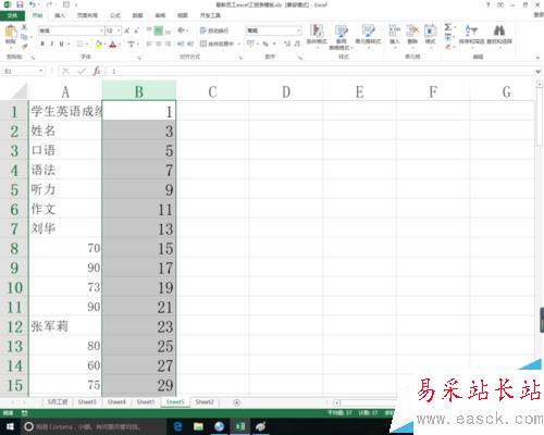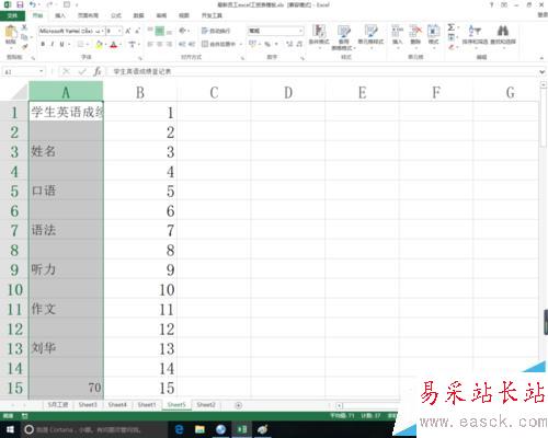 2、輸入數據,或引用源數據,這里我自行輸入了一份學生成績單,各位可以自行操作。