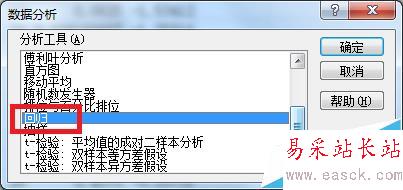 3、出現如下頁面,找到分析工具中的“回歸”,點擊“確定”。