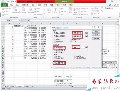 注意事項:不要忘記選擇輸出區域和正態概率圖。
