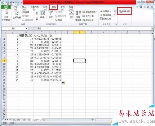 2、excel 2010的工具在“數據”中找,點擊“數據分析”。