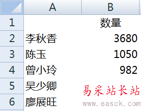 7、確定后就在“匯總”表生成了每個人的“數量”匯總求和數據。