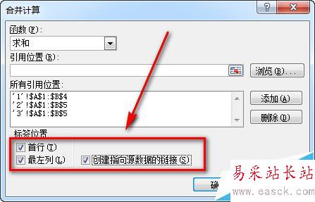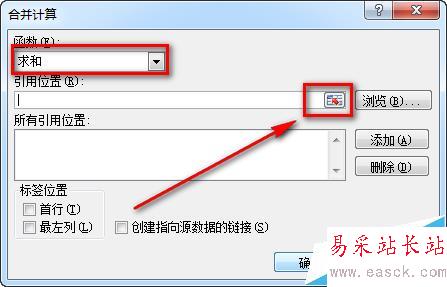 3、左上角選擇適當的運算方式,本例為“求和”。如下圖所示點擊選擇按鈕選擇數據。