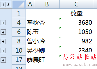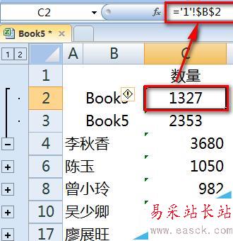10、點擊每個人旁邊的加號就可以看到匯總數據是從哪張工作表的哪個單元格引用過來的。