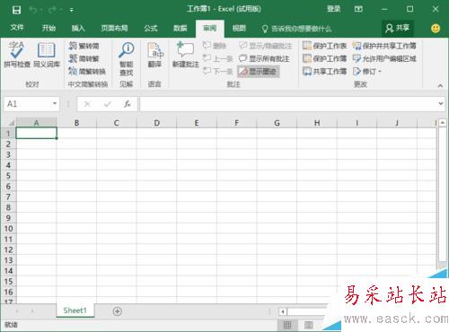 6、“審閱”菜單選項功能區包含校對、中文簡繁轉換、語言、批注和更改幾個分組功能區。此功能主要用于對Excel工作表進行校對和修訂等操作。如圖所示;