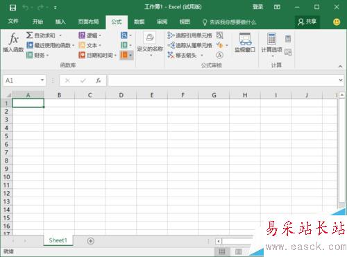 4、“公式”菜單選項功能區包含函數庫、定義的名稱、公式審核和計算幾個分組功能區。此功能主要用于在Excel工作表中進行各種數據計算。如圖所示;