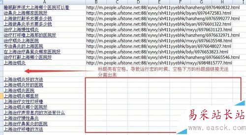 從事醫(yī)療網(wǎng)絡(luò)優(yōu)化推廣的朋友都知道收錄率的重要性,所以每天網(wǎng)站里面發(fā)布的文章就需要提取出標(biāo)題和URL進(jìn)行外鏈發(fā)布,好吸引蜘蛛及時(shí)收錄文章,那么問題來了,大部分后臺(tái)都是只能導(dǎo)出標(biāo)題,并不能直接導(dǎo)出URL,當(dāng)然導(dǎo)出的標(biāo)題上帶有超鏈接,那么如何把標(biāo)題上的超鏈接提取出來呢?即把標(biāo)題和超鏈接分離開來,下面為您詳細(xì)介紹。