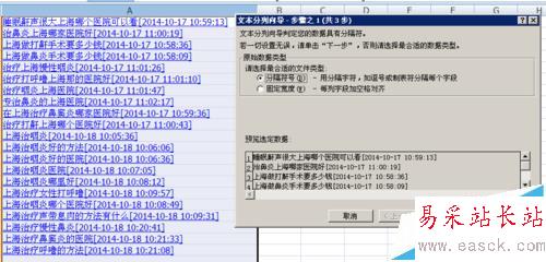 1、通常我們從網(wǎng)站后臺(tái)導(dǎo)出的標(biāo)題是帶日期的,所以首先需要把標(biāo)題和日期分開:選中標(biāo)題列——數(shù)據(jù)——分列——下一步——分隔符號(hào)——完成