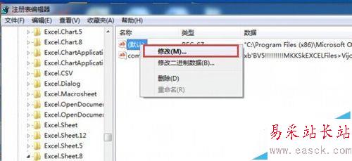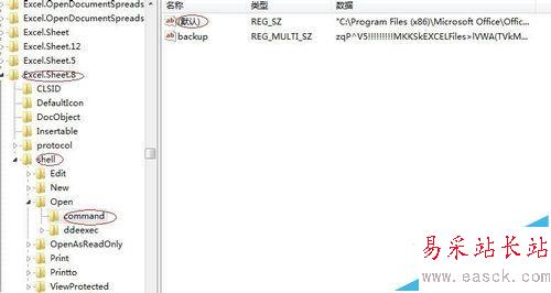3、點擊Excel.Sheet.8,依次選擇shell--open--command--(默認)