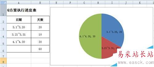 1、打開excel,建立所需數據源,選擇周期數據源,【插入】--【餅圖】--【二維餅圖】,選擇第1個餅圖,建成餅圖,顏色可自行選擇調整。