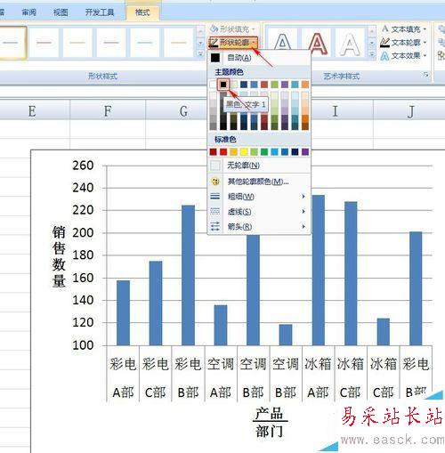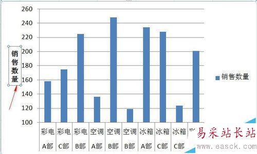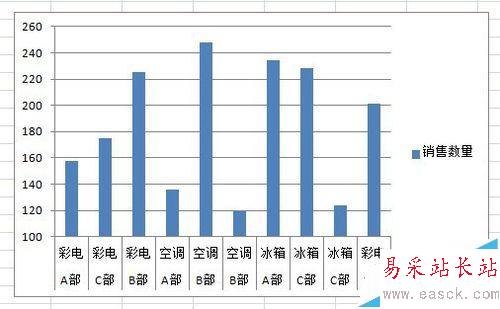 1、如圖這是一張家電行業銷售業績表。我們想把Y軸間隔修改成不是從0開始的坐標軸。因為我們可以看到銷售量最小的超過100,最大也不超過260.