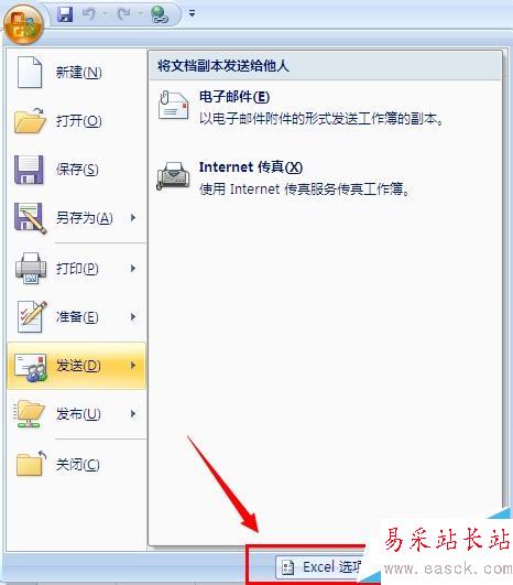 1、點擊office功能按鈕,選擇菜單底部EXCEL選項