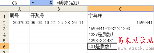 11、我們知道3是質數,431還需要計算一步。我們得到:1599441=1237×431×3