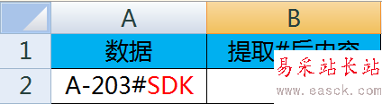 1、如下圖,要提取#后面的字符,也即紅色的“SDK”到B列。