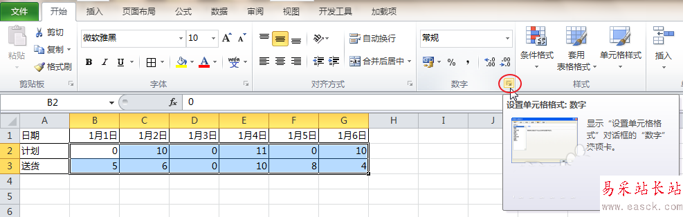 1、選中要設置格式的單元格區域,單擊 [開始] - [數字] 右下角的箭頭,打開 [設置單元格格式] 對話框
