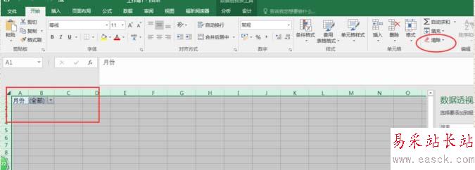 3、刪掉每個表格的內容,(選中第一張表,按照shift建,點擊最后一張表,即全選了工作表格,然后選中全部,點擊清除-->全部清除,就完成了批量的空表生成)如圖: