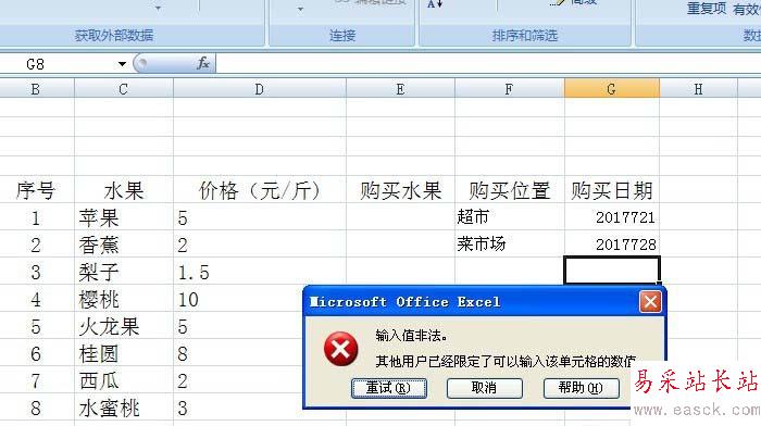 以上就是excel控制表格中智能輸入置頂時間的教程,錯誤的是不能輸入的。