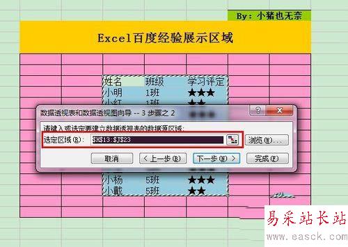 3、 接著會彈出第二個對話框,系統直接定位到選中的區域,直接單擊“下一步”按鈕。