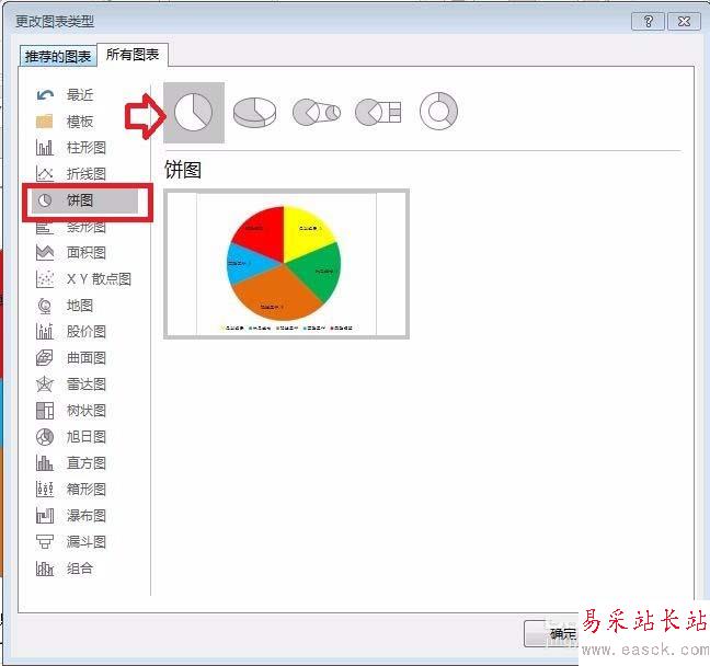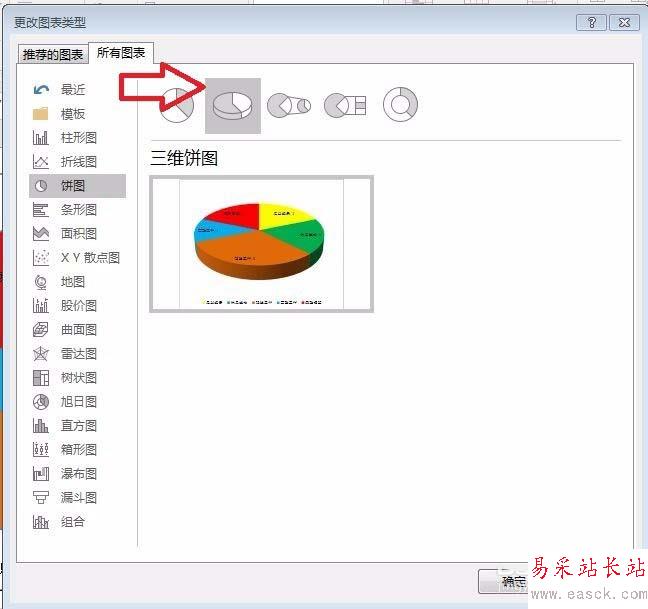 3、在彈出的對話框中可以發(fā)現(xiàn),當前的餅圖為二維的;