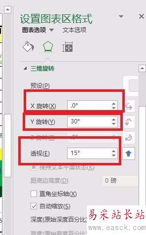 6、調(diào)整角度一般為X旋轉(zhuǎn)0度、Y旋轉(zhuǎn)30度、透視15(供參考).