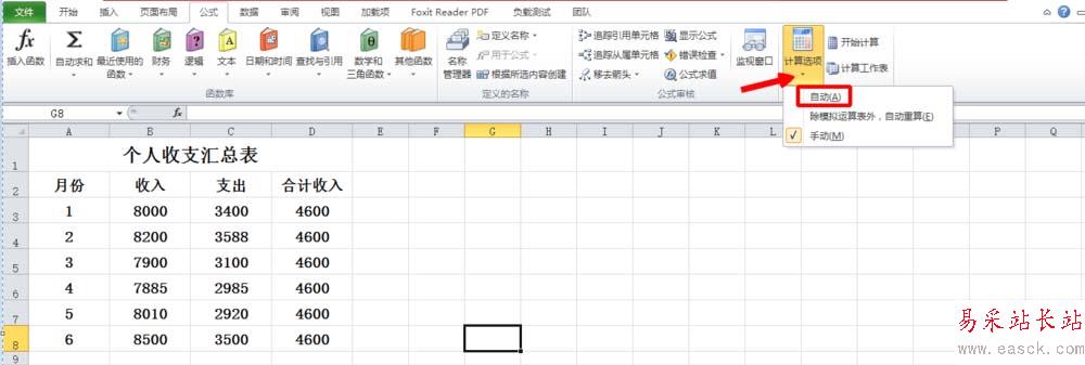 5、單擊“計算選項”中的下三角,把“手動”改成“自動”。