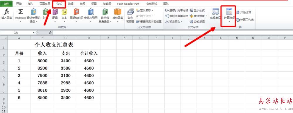 4、檢查公式是沒有錯的,這時就要點開“公式”---->"計算選項"。
