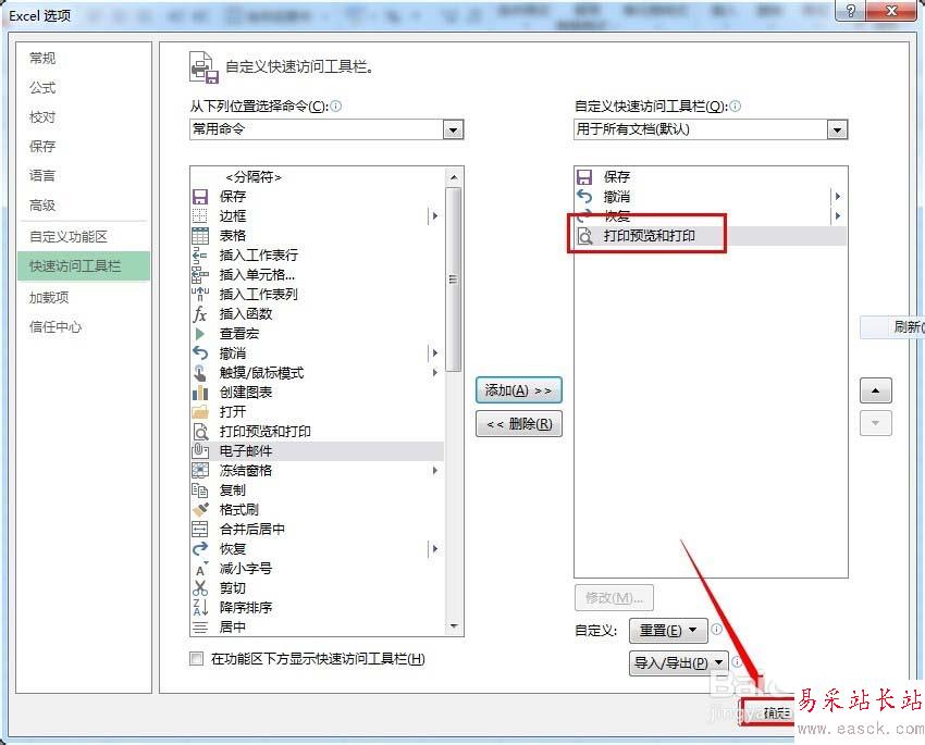 6、這時快速訪問工具欄中就添加上了【快速預覽和打印】。