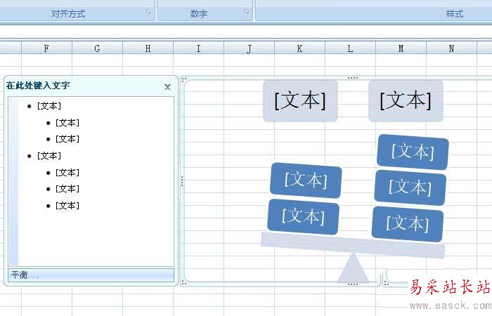2、鼠標(biāo)左鍵選擇一個(gè)關(guān)系圖的樣式,excel表格中就出現(xiàn)了該關(guān)系圖,這里選擇了(平衡關(guān)系圖),如下圖所示。