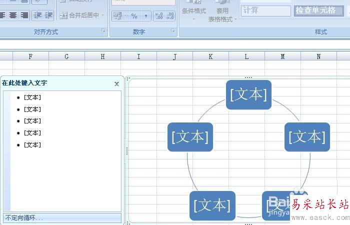 5、鼠標(biāo)左鍵選擇一個(gè)關(guān)系圖的樣式,excel表格中就出現(xiàn)了該關(guān)系圖,這里選擇了(不定向循環(huán)圖),如下圖所示。