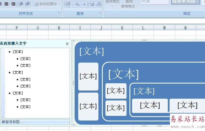 4、鼠標(biāo)左鍵選擇一個(gè)關(guān)系圖的樣式,excel表格中就出現(xiàn)了該關(guān)系圖,這里選擇了(嵌套目標(biāo)圖),如下圖所示。