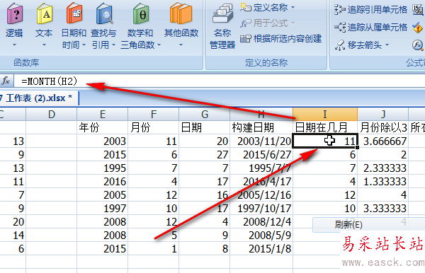 4、用month函數來產生日期的月份,顯然這些月份和前面的是一樣的。