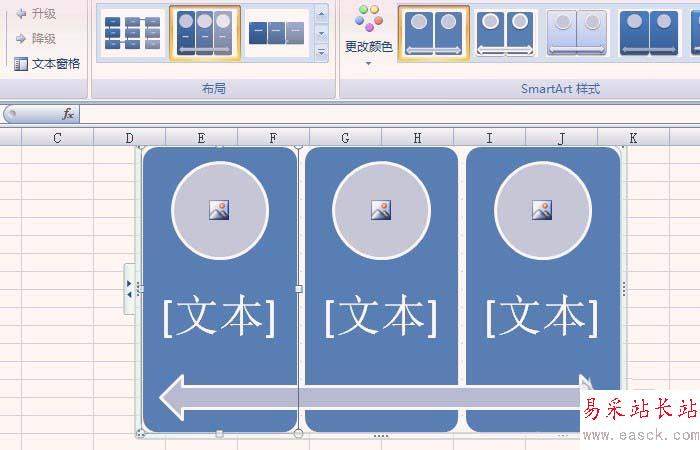 5、鼠標左鍵選擇一個流程的樣式,excel表格中就出現了該流程,這里選擇了(連續圖片流程),如下圖所示。