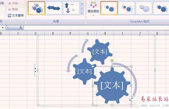 6、鼠標左鍵選擇一個流程的樣式,excel表格中就出現了該流程,這里選擇了(齒輪流程),如下圖所示。