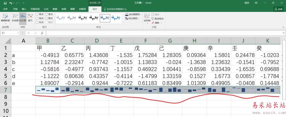 5、使用同樣的方法也可以制作根據(jù)列的數(shù)據(jù)列表或盈虧圖。