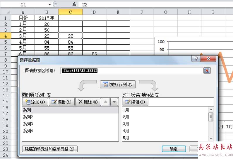 Excel怎么雙坐標(biāo)軸的雙折線圖表?