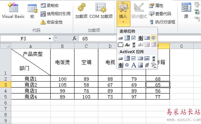 2、點(diǎn)擊開(kāi)發(fā)工具菜單并切換到該菜單,執(zhí)行-插入-表單控件命令,從下拉菜單中選擇選項(xiàng)按鈕控件,在sheet1中創(chuàng)建兩個(gè)選項(xiàng)按鈕控件。