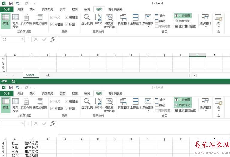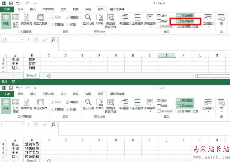 6、我們去掉選中同步滾動,鼠標移到哪個表上面就只滾動那個表的行,這是非常方便的。